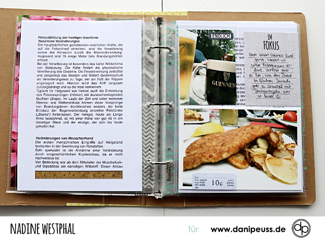 Nadine hat das August Minikit zu einem 6x8“ Album ihrer Helgoland-Reise verarbeitet. Was mir richtig gut gefällt, ist diese Mischung aus persönlichen Erinnerungen und dem professionellen „Fachwissen“ aus Wikipedia, das sie mit ins Album eingebaut hat.
